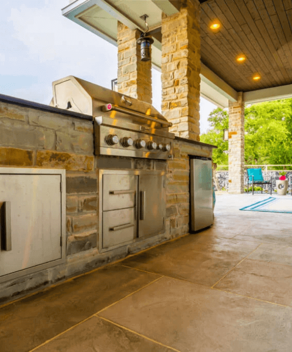 We can incorporate stucco, natural stone, ledge stone, travertine, granite, or Silestone. Your floors could be an overlay, pavers, concrete, or wood decking. The structure itself could be built with steel, cedar, aluminum, treated lumber, or hardi-products. Given our wide range of expertise and resources, we’ll work with you each step of the way to incorporate your vision into every aspect of the project.